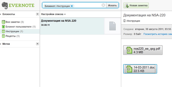 Еще один крайне удобный момент (особенно для журналистов) - возможность создания прямо в заметке аудиотрека - попросту говоря, диктофонной записи. Я этим часто пользуюсь по работе - потом крайне удобно обрабатывать написанный текст и при необходимости слушать звуковые иллюстрации (те же интервью, выступления и так далее). Кроме того, это все вместе может храниться сколько угодно долго, так что, если вдруг в дальнейшем понадобится, запись всегда можно быстро найти, прочитать и прослушать.
