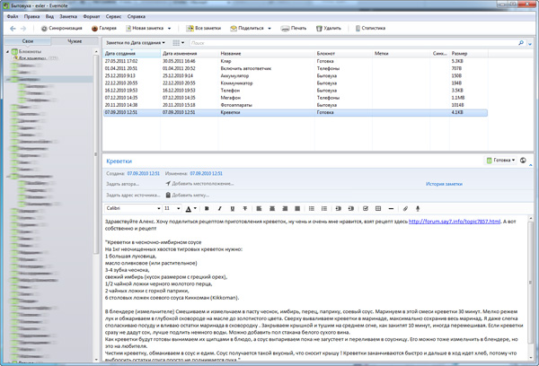 Через веб-интерфейс доступны многие возможности - можно создавать иерархию блокнотов, делать в них заметки. Система поддерживает различные форматы, передаваемые через буфер обмена, так что вы можете также сохранять прямо целые куски сайтов. Вот, например, сохраненный рецепт.