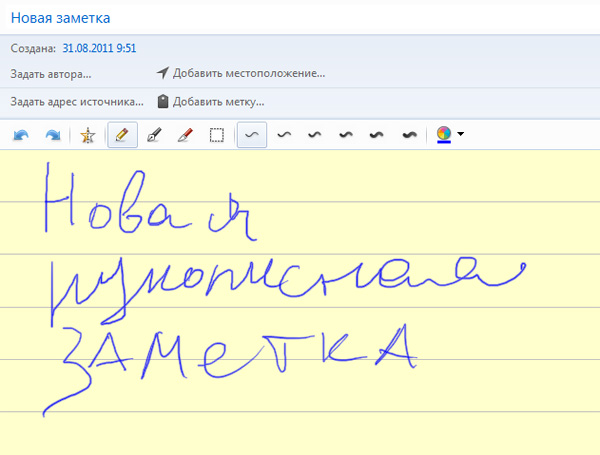 Ну и в клиенте вы можете делать рукописные заметки: текст или рисунки создаются с помощью мыши, светового пера или с помощью пальца-стила, если речь идет о коммуникаторе.