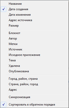 При работе с клиентами Evernote для обычного компьютера появляются продвинутые возможности отбора-сортировки. Например, вы можете отбирать заметки по вот таким параметрам.