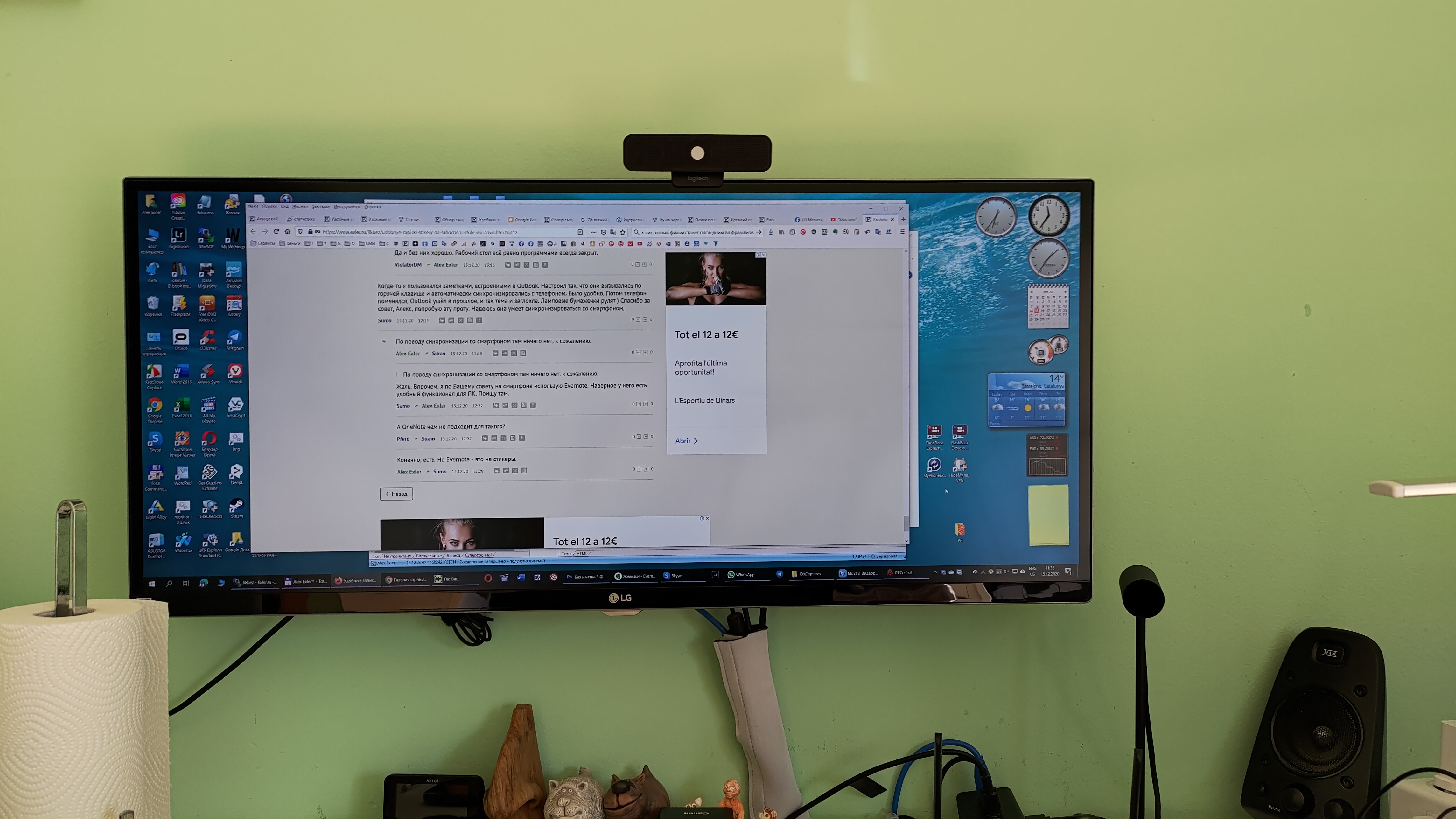 Второй монитор стоит вертикально - для всяких pdf и длинных страниц (типа экслеровских обзоров телефонов).