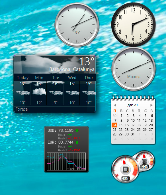 Гаджеты на рабочем столе, стикеры, часы для разных городов - аж олдскулы свело! 😄