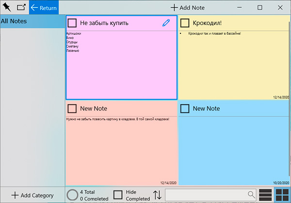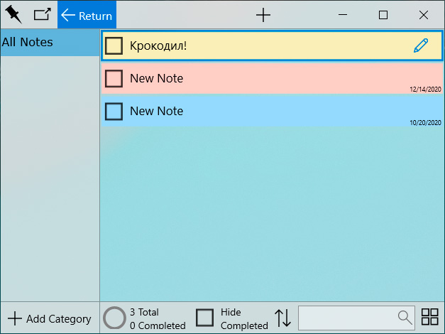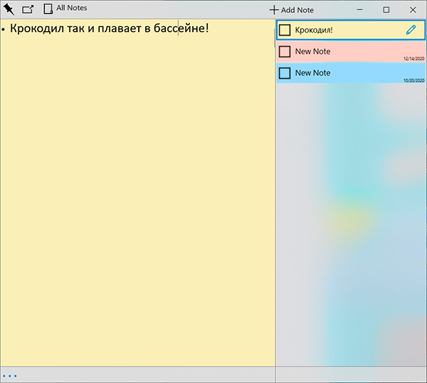 Еще одна бесплатная программа из магазина Microsoft - Pin Note. Тут что интересно? Новые стикеры создаются в окне приложения, остальные стикеры листаются внутри него.