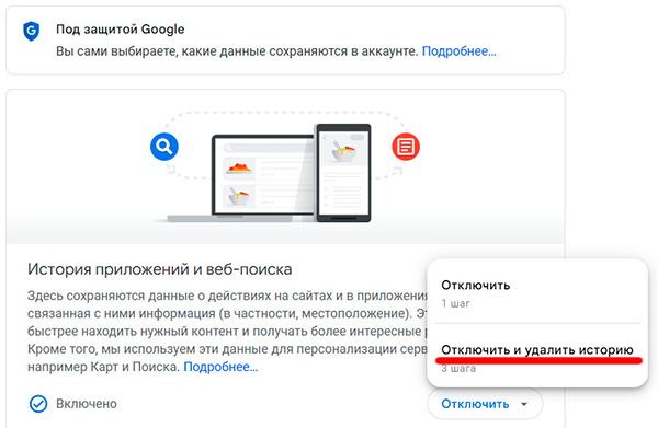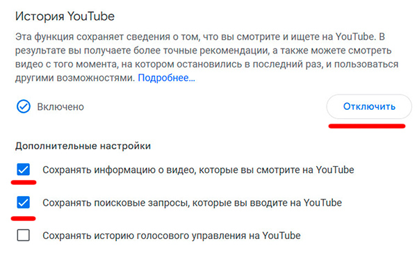И, что важно, нужно отключить еще и сохранение истории запросов в YouTube.